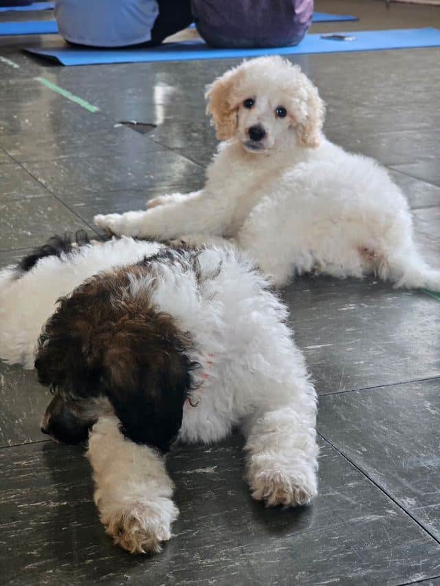 They have completed two yoga classes and are totally crate trained